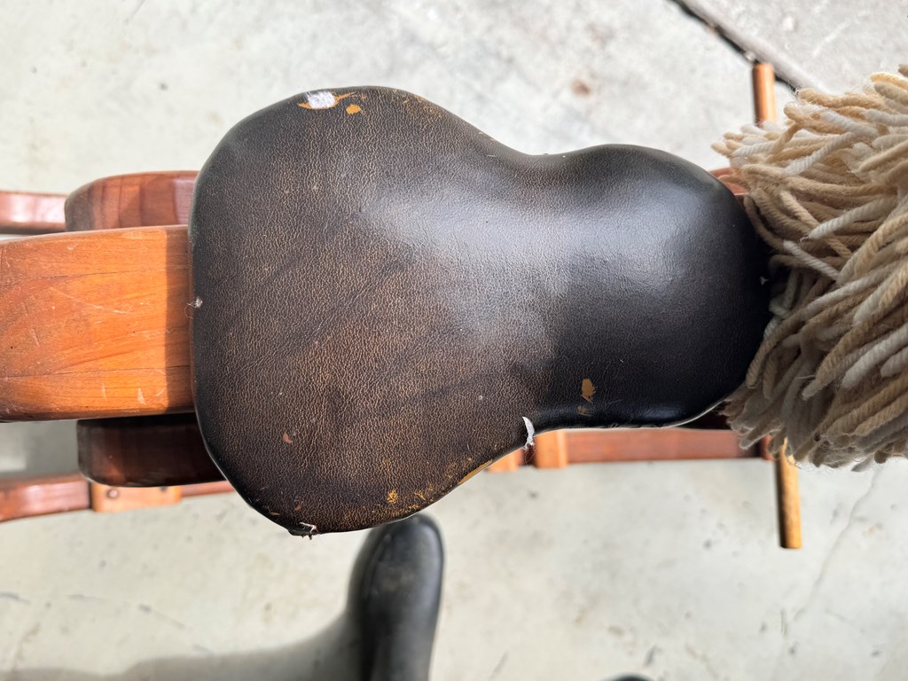Absolutely adorable vintage piece. It is not new of course and has minimal wear. Super cute decor or for larger kids as the seat is 28” off the ground