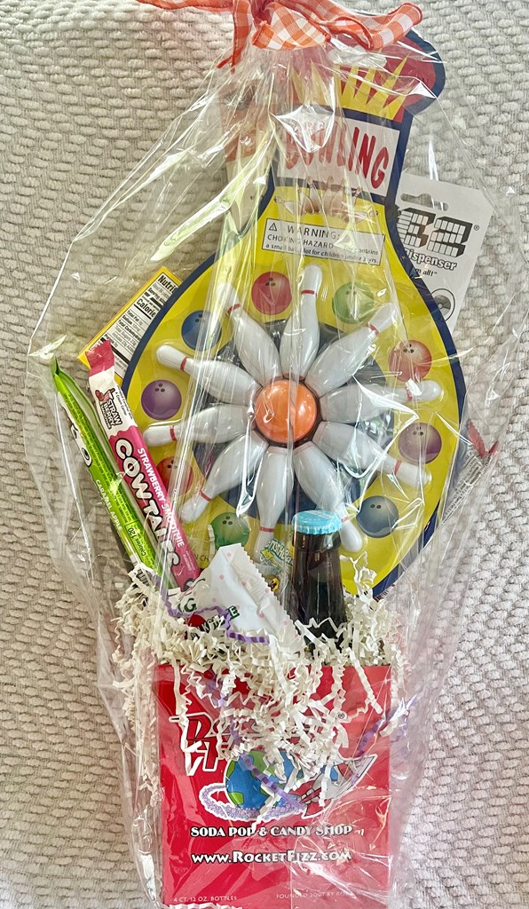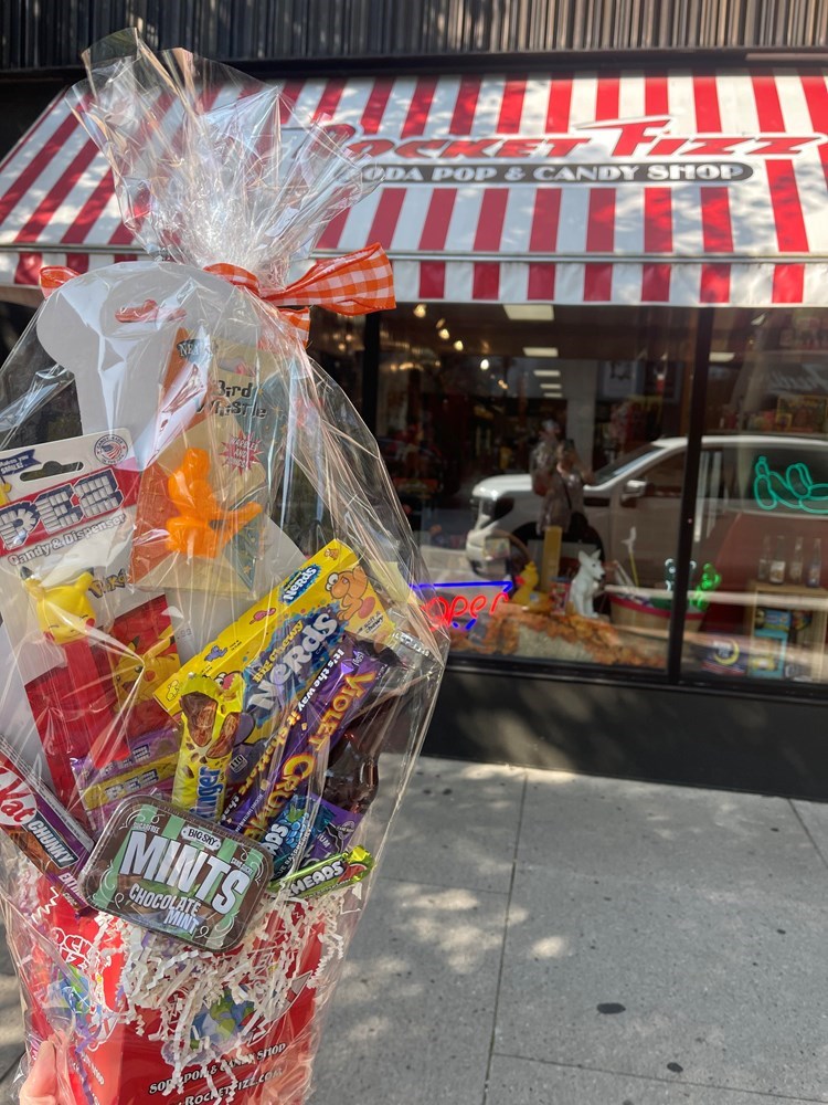 A fun collection of candy, drinks & goodies wrapped up ready to go!