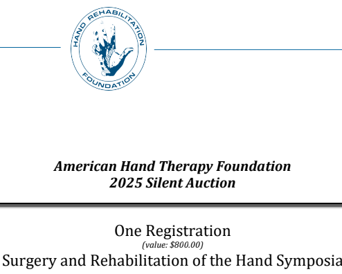 One registration to the 2026 Surgery and Rehabilitation of the Hand Symposium to be held in Philadelphia. VISIT THEM AT BOOTH #300 The Hand Rehabilitation Foundation, established in 1975, is a 501(c)(3) non-profit corporation formed to promote research and education, and disseminate information to physicians and therapists who work with children and adults with hand disorders caused by injury, disease, or present at birth. Among its other educational offerings, each year The Foundation sponsors an annual symposium known worldwide as The Philadelphia Meeting. This symposium brings together an international faculty of hand surgeons and certified hand therapists to teach and demonstrate the most current advances in hand rehabilitation correlated with hand surgery. Since the first symposium in 1974, thousands of hand therapists, occupational therapists, physical therapists and surgeons have increased their clinical skills and knowledge by attending this meeting. https://handfoundation.org/