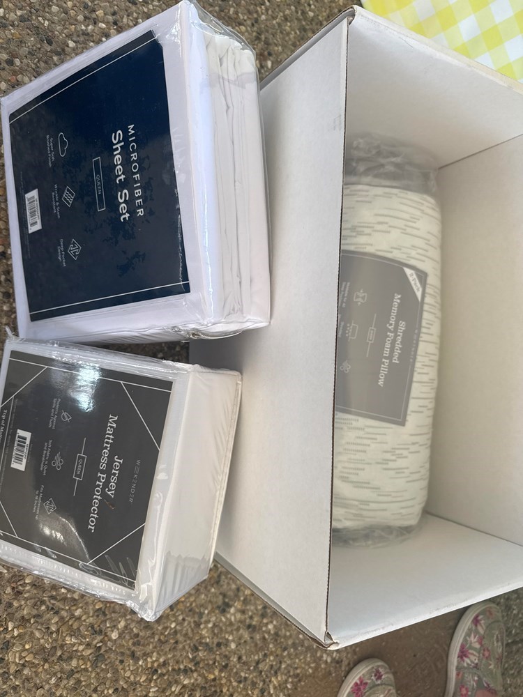 Jersey mattress protector; microfiber sheet set, and 2 pack memory foam pillow