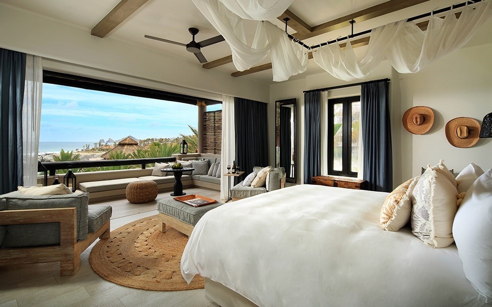 Overlooking the Sea of Cortez, Esperanza offers an incomparable natural setting on 17 lush acres. The resort is designed for guests seeking a private vacation retreat with all the comforts of home and access to world-class dining and an award-winning Cabo Spa and Fitness program. The Southern Baja subtropical desert climate offers a blissful 350 days of sunshine a year with warm temperatures and temperate breezes, making Cabo and Esperanza an ideal year-round destination. The stunning waters of the Baja peninsula create a wonderful setting for activities such as snorkeling, sailing and sportfishing. Five championship-level golf courses are just minutes away. A multitude of other diversions await nearby our award-winning Cabo luxury resort, such as eclectic shopping, dining, and nightlife. ACCOMMODATIONS Decorated in classic Baja Style, these casitas offer 925 sq ft of indoor/outdoor living space, located on the ground floor with beautiful views of the gardens and partial views of the Sea. These Cabo beach resort casitas feature one king bed adorned with a dramatic artful backdrop, warm lighting and soft netting drape. Plush daybeds, handcrafted furniture and accessories created by Mexican artisans are seen throughout the guestrooms of our resort in Cabo San Lucas. Spacious bathrooms feature double vanities, showers built for two and a separate soaking tub. The outdoor terrace at our luxury Cabo hotel, has a wrap around padded banco and a hammock. ROOM HIGHLIGHTS Personal concierge 925 SF of indoor/outdoor living space Beautiful garden and ocean views Private terrace Hammock ACTIVITIES: The blue Pacific and the Sea of Cortez are home to an array of Cabo San Lucas activities including outstanding snorkeling, sailing and sport fishing. Play championship golf in Cabo and take in the stunning views of the sea and surrounding desert. If you are a thrill-seeker, ride the dunes or go on a whale watching journey. For a tranquil experience, unwind at a world-renowned Cabo spa or sample eclectic shopping with exciting nightlife just steps away. There are always things to do in Cabo San Lucas! Helicopters, Yachts and Diving Explore the stunning coast from sea and sky with a private helicopter tour and taking in the scenic views of the Pacific Ocean, Sea of Cortez and the Arch then take to the seas sailing, swimming with whale sharks and sea lions or snorkeling along the reef. Whale Watching After their 10,000 mile migration from Alaska, gray whales arrive to give birth and nurse in the warm waters of the Sea of Cortez. Whale watching is available January – March. Cooking Class Every Thursday at 5pm our Executive Chef will help you prepare a delicious meal. You’ll collect “chocolata clams” from the sea to prepare a traditional fish and clam ceviche, then using fresh and aromatic herbs from the Chef’s garden, prepare a pescado zarandeado over a wood and coal bonfire. Enjoy these dishes on the beach along with a traditional mojito. GOLF Cabo San Lucas is renowned as one of the premier golf destinations in the world with five championship level courses to choose from. While partaking in golf in Cabo, the dramatic setting of the desert sands, ocean and lavish greens creates an unforgettable experience for even the most seasoned golfer. Our Cabo luxury resort concierge will be happy to assist in arranging golf teetimes at any of the nearby courses.