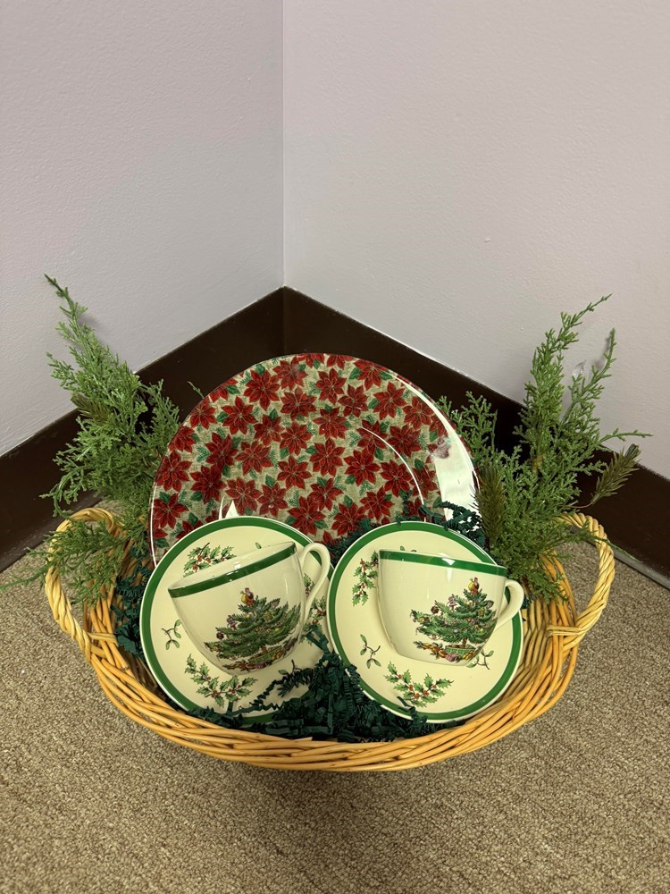 Spode Tea Cups with Poinsettia Plate