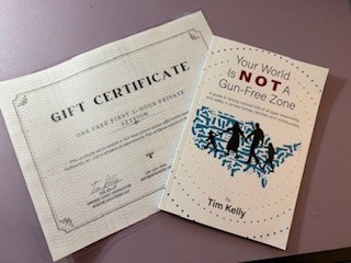 This certificate can be used for a two hour private session with Apache Solutions, LLC in Yadkinville NC Certificate expires 11/1/2026 "Your World is NOT a Gun-Free Zone" by Tim Kelly
